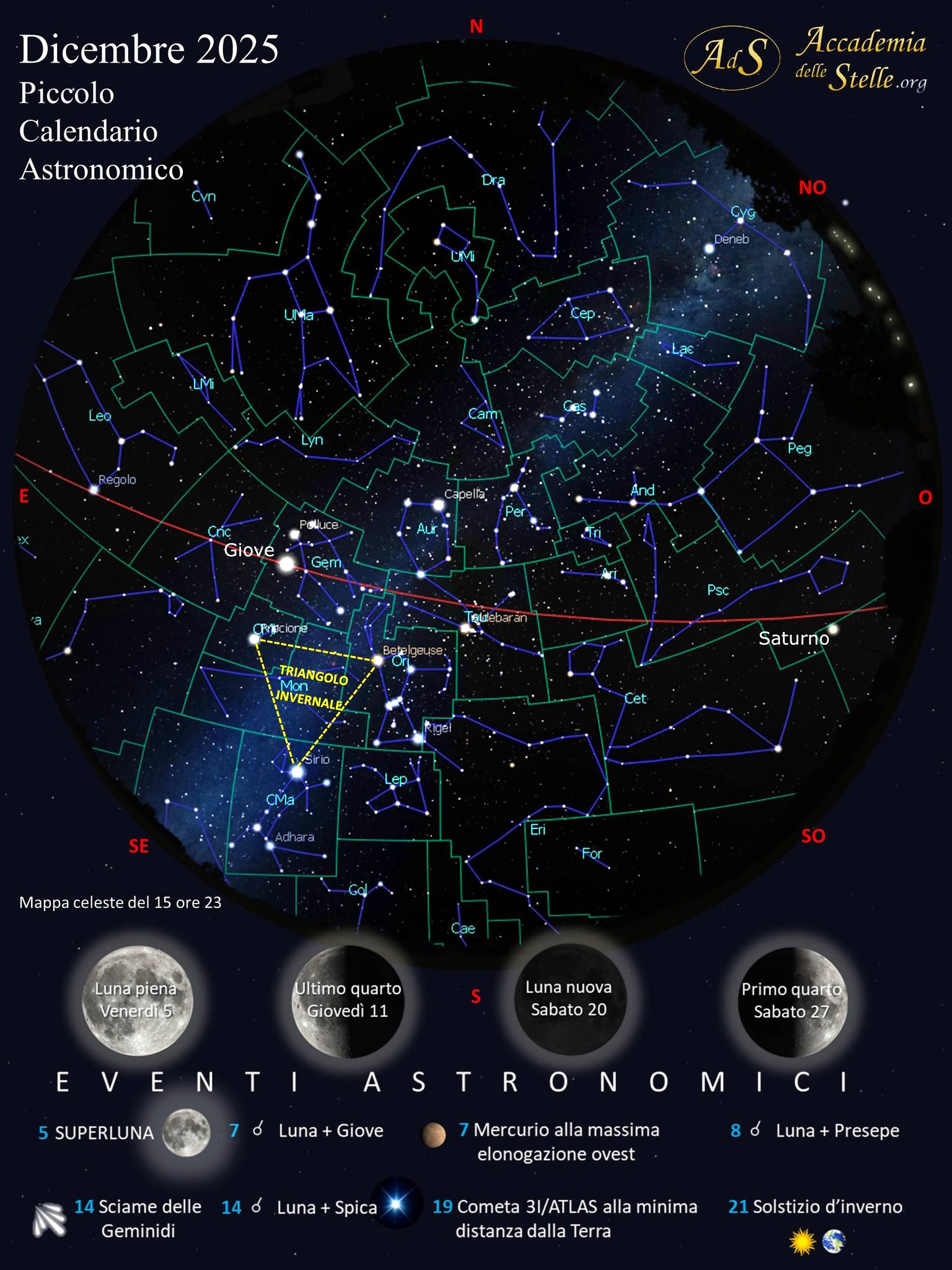 CALENDARIO ASTRONOMICO DI DICEMBRE 2025