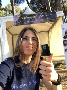 Quando mi sono trasferita a Roma per motivi di studio ho sempre cercato un gruppo di persone che avesse la mia stessa passione. Per gioco scrivevo un piccolo blog che raccoglieva notizie e appunti del web e mi sono imbattuta nell’Accademia delle Stelle, anche grazie a Paolo Colona che mi ha convinta a partecipare ad una delle sue lezioni del corso di astronomia. Da quel momento in poi non ho mai più smesso di frequentare l’Accademia dove ho conosciuto persone meravigliose e appassionate come me.