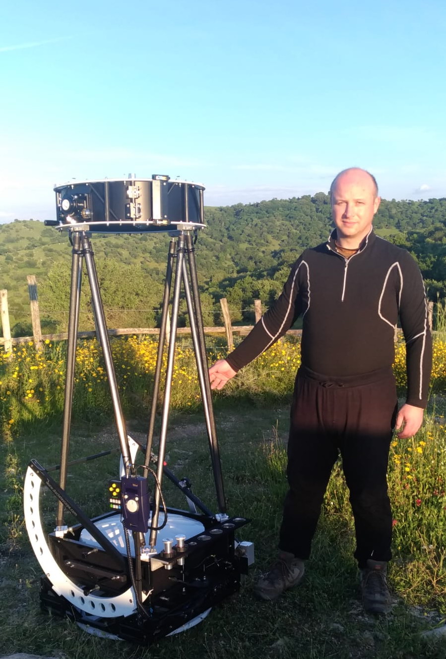 Strumentazione: Newton Dobson da 50 cm e da 15 cm, rifrattore apocromatico da 12 cm e acromatico da 10 cm, montatura equatoriale HEQ5, telescopio solare H-Alpha da 8 cm, binocolo angolato a 45° apocromatico da 10 cm su parallelogramma
