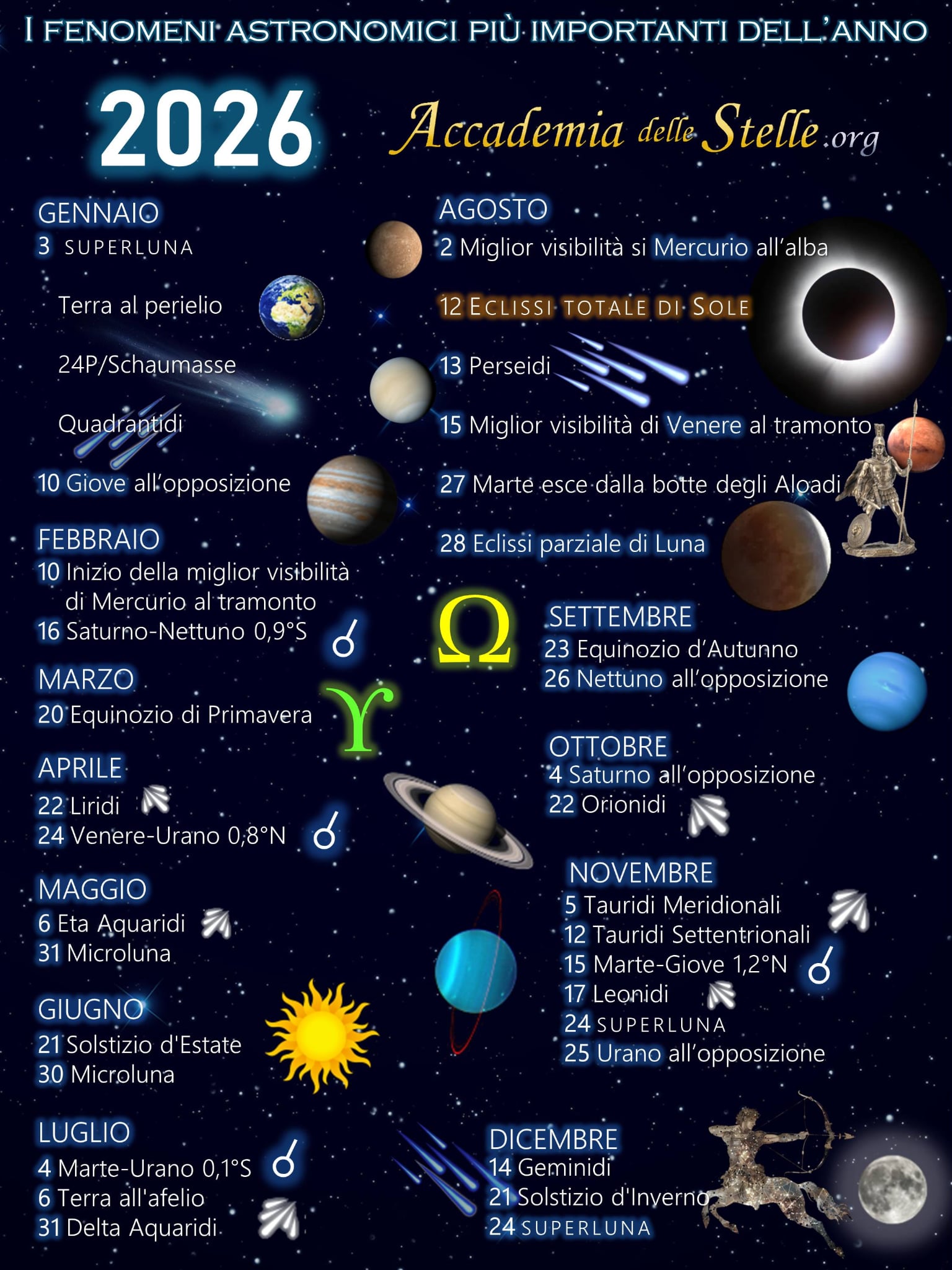 Il calendario con tutti i principali eventi astronomici dell’anno a cura dell’astronoma Ilaria Sganzerla ![]()