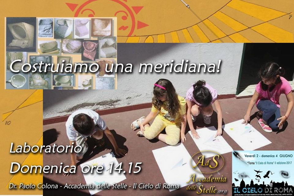 Durante Il Cielo di Roma, la grande manifestazione astronomica della Capitale, Accademia delle Stelle curerà, domenica alle 14.15, un laboratorio aperto a tutti per la realizzazione di una meridiana.
